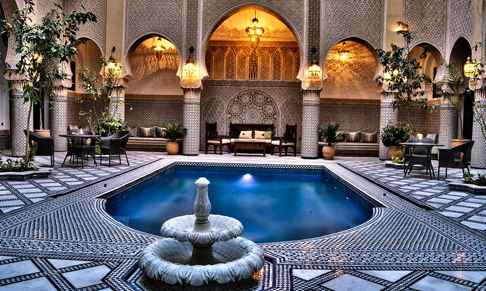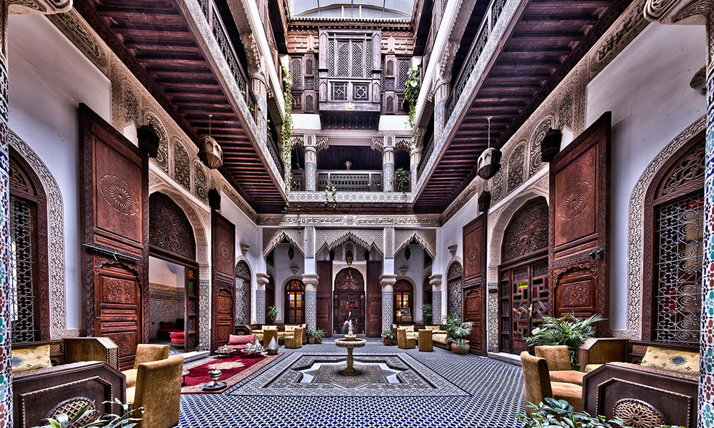 After breakfast our day is going to begin around 9AM to spend the day discovering the old Medina of fes with our local guide, the fi rst part of the tour we are going to start driving from the hotel to stop at one of largest places in Morocco with 7 golden gates to learn about moroccan monarchy, and walk to one of the oldest and largest jewish quarters in Morocco, after we will drive to stop in one of highest points where you can see the oldest Medina with a wonderful view to Rif mountain and Atlas Mountains, and for another 5 minutes to stop a village of pottery to learn bit about mosaics and zellige, than drive back to one of get to start rest of the tour bay walking to get lost in one of oldest carefree zone in the world and its have 9000 plus ali ways and we stop for lunch and visit the oldest university in the world visit the coranque school, and also we are going to stop oldest tanners in Morocco (8 centurie) because we meet our driver who going to take us back to our hotel (dinner and overnight at hotel).