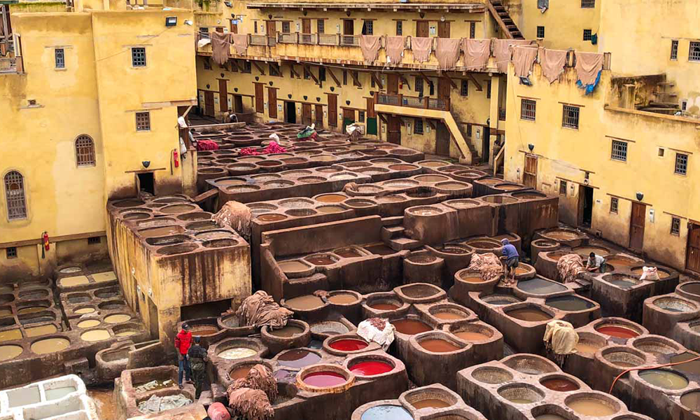 After breakfast our day is going to begin around 9AM to spend the day discovering the old Medina of fes with our local guide, the fi rst part of the tour we are going to start driving from the hotel to stop at one of largest places in Morocco with 7 golden gates to learn about moroccan monarchy, and walk to one of the oldest and largest jewish quarters in Morocco, after we will drive to stop in one of highest points where you can see the oldest Medina with a wonderful view to Rif mountain and Atlas Mountains, and for another 5 minutes to stop a village of pottery to learn bit about mosaics and zellige, than drive back to one of get to start rest of the tour bay walking to get lost in one of oldest carefree zone in the world and its have 9000 plus ali ways and we stop for lunch and visit the oldest university in the world visit the coranque school, and also we are going to stop oldest tanners in Morocco (8 centurie) because we meet our driver who going to take us back to our hotel (dinner and overnight at hotel)